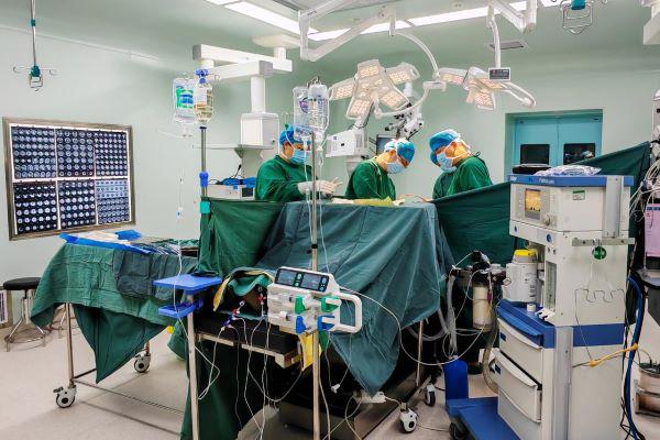 显微镜下定位病灶、准确切除……7月17日,杨兴奎带领团队严谨细致、有条不紊地进行着每一个环节的操作,在全麻下为李刚实施了切除手术,历经3个多小时,手术顺利完成。