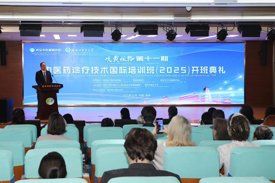 10月13日,由陕西省商务厅、陕西省中医药管理局、西安市卫生健康委员会指导,国家中医药服务出口基地西安中医脑病医院、陕西中医药大学、俄罗斯中医药学会联合举办的“岐黄丝路”第十一期中医药诊疗技术国际培训班在西安开班,30余名来自俄罗斯的医疗从业者到西安中医脑病医院深入学习中医适宜技术、近距离体验中医药文化。