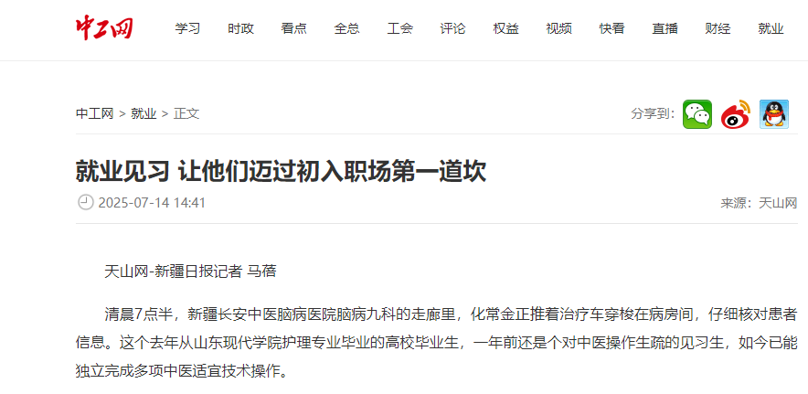 清晨7点半,新疆长安中医脑病医院脑病九科的走廊里,化常金正推着治疗车穿梭在病房间,仔细核对患者信息。这个去年从山东现代学院护理专业毕业的高校毕业生,一年前还是个对中医操作生疏的见习生,如今已能独立完成多项中医适宜技术操作。