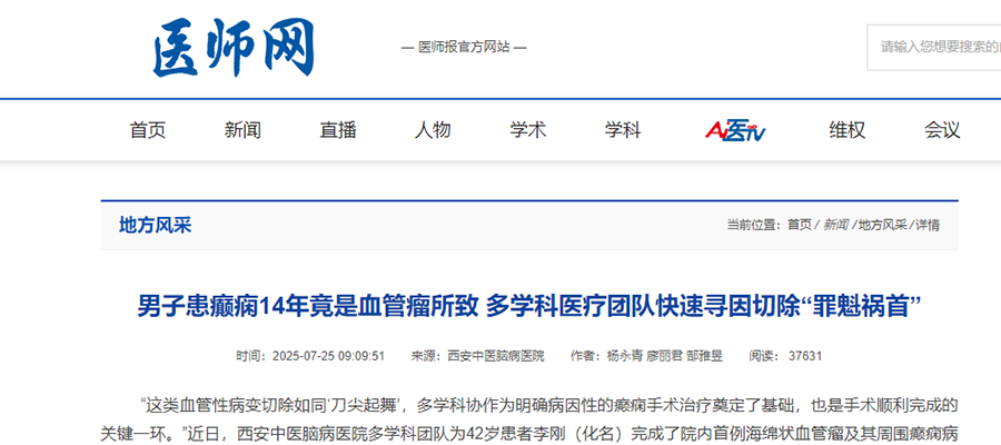 “这类血管性病变切除如同‘刀尖起舞’,多学科协作为明确病因性的癫痫手术治疗奠定了基础,也是手术顺利完成的关键一环。”近日,西安中医脑病医院多学科团队为42岁患者李刚(化名)完成了院内首例海绵状血管瘤及其周围癫痫病灶组织切除术,谈及此次手术,主刀医生、该院神经外科主任杨兴奎说道。