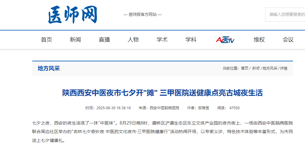 七夕之夜,西安的夜生活添了一抹"中医味"。8月29日晚8时,灞桥区浐灞生态区东立文体产业园的夜市街上,一场由西安中医脑病医院联合周边社区举办的"杏林七夕奇妙夜 中医药文化夜市·三甲医院健康行"活动热闹开场,以专家义诊、特色技术体验等丰富形式,为市民送上七夕健康礼。